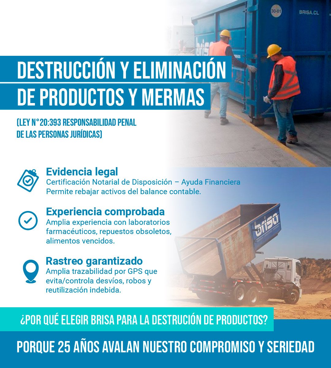 Servicio de transporte y eliminación de los productos o residuos que se requieran destruir, desde el lugar de almacenamiento hasta la disposición final, permitiendo la trazabilidad de los mismos, que quedará registrado en un informe o certificado, de acuerdo a la disposición legal de nuestro país. Está dirigido principalmente a las siguientes industrias:
